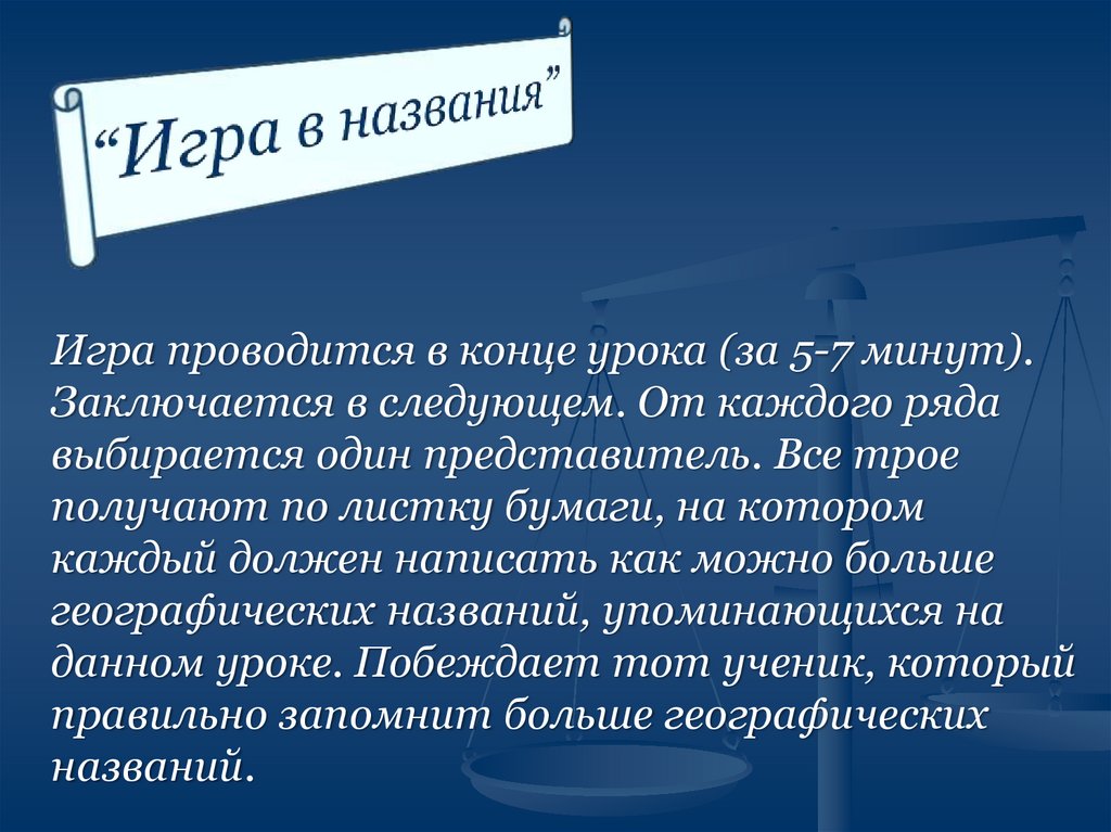 Данный прием позволяет активизироватьпроизвольную память при изучении географической
