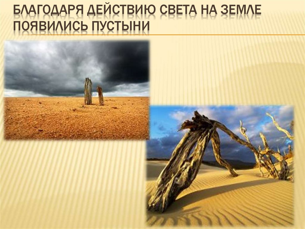 БЛАГОДАРЯ ДЕЙСТВИЮ СВЕТА НА ЗЕМЛЕПОЯВИЛИСЬ ПУСТЫНИ