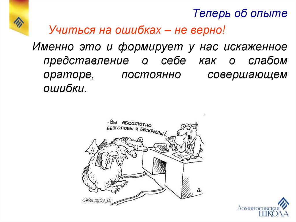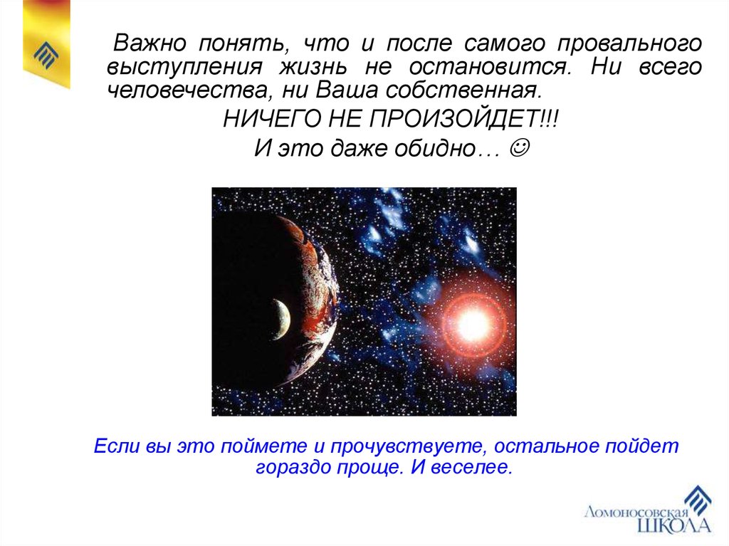 Важно понять, что и после самого провальноговыступления жизнь не остановится. Ни всего