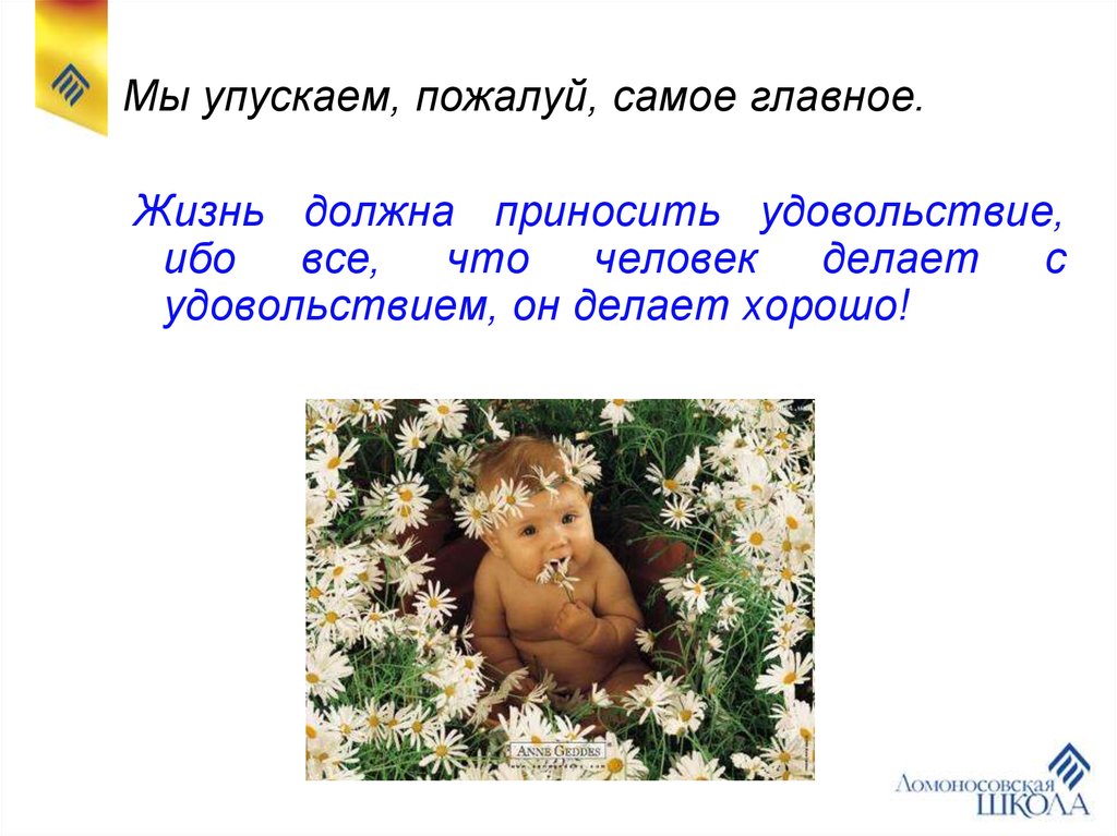 Мы упускаем, пожалуй, самое главное.Жизнь должна приносить удовольствие,