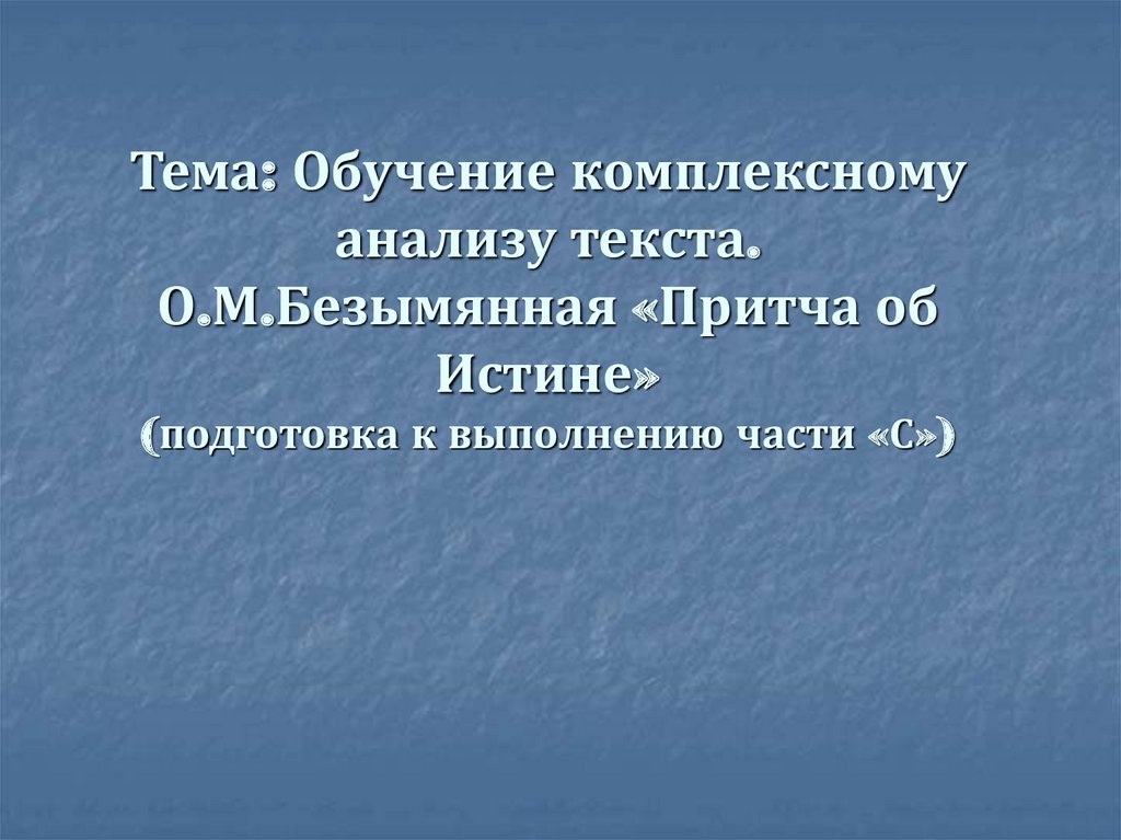 1. Тема: Обучение комплексному анализу текста. О.М.Безымянная «Притча об Истине» (подготовка к выполнению части «С»)