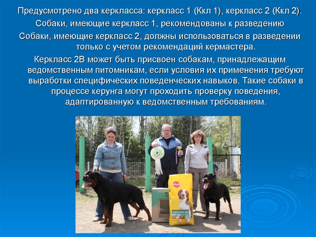 Собаки, имеющие керкласс 2, должны использоваться в разведении