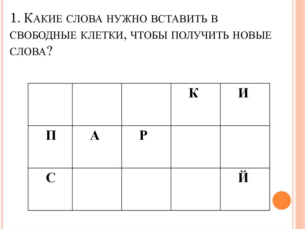 1. КАКИЕ СЛОВА НУЖНО ВСТАВИТЬ ВСВОБОДНЫЕ КЛЕТКИ, ЧТОБЫ ПОЛУЧИТЬ НОВЫЕ