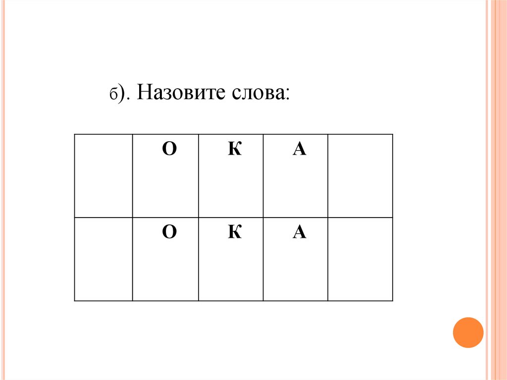 б).Назовите слова: