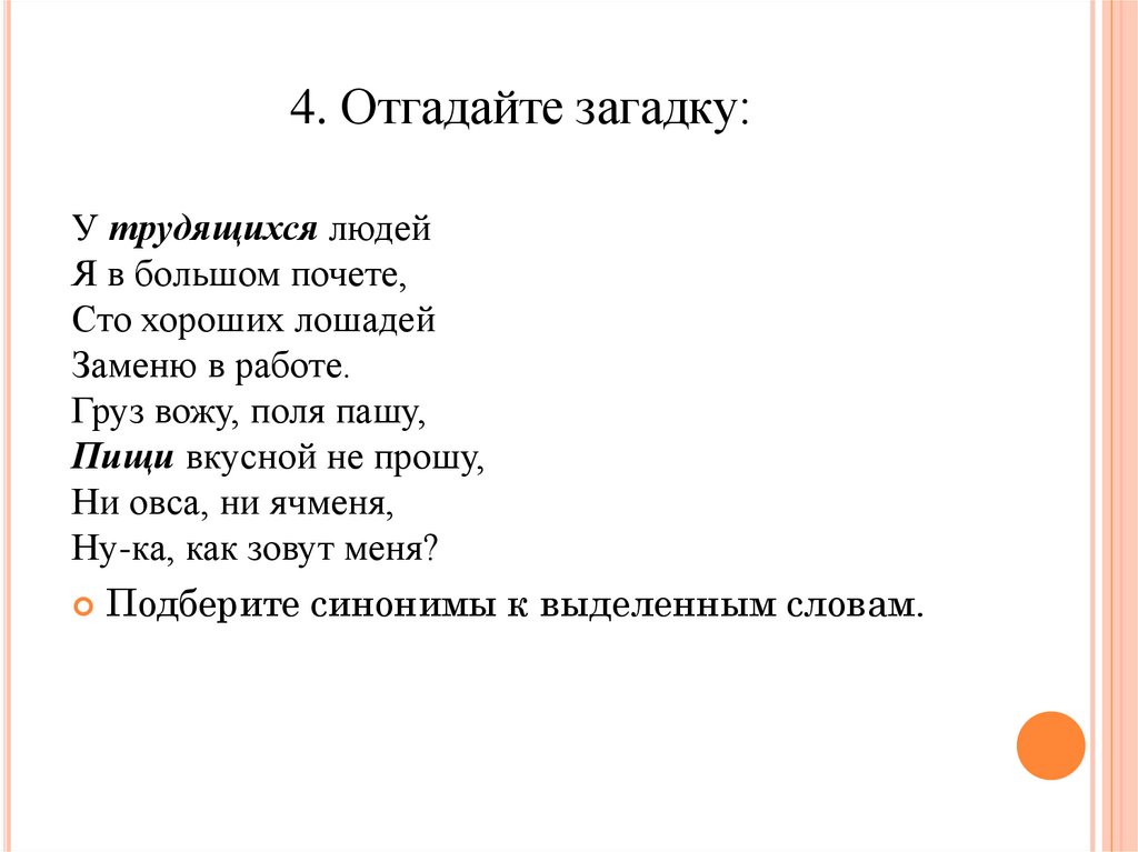 4. Отгадайте загадку:У трудящихся людей