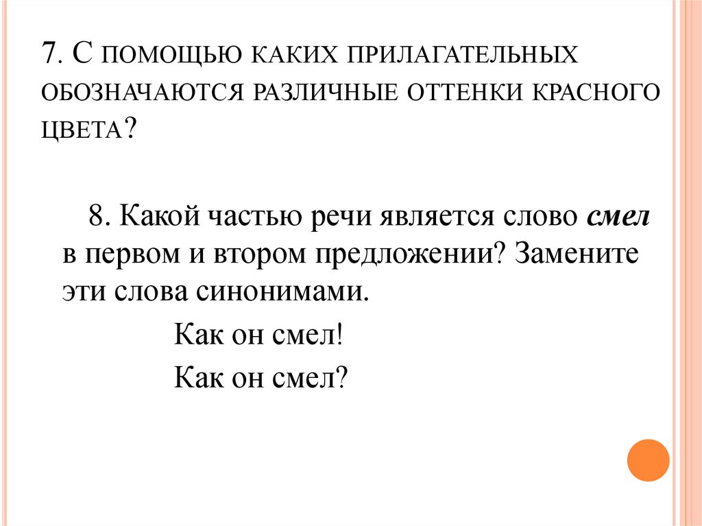 8. Какой частью речи является слово смел
