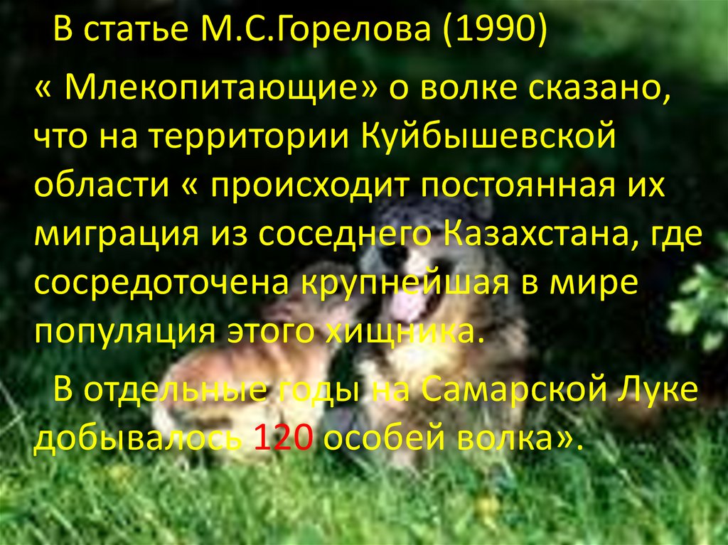 В статье М.С.Горелова (1990)« Млекопитающие» о волке сказано,