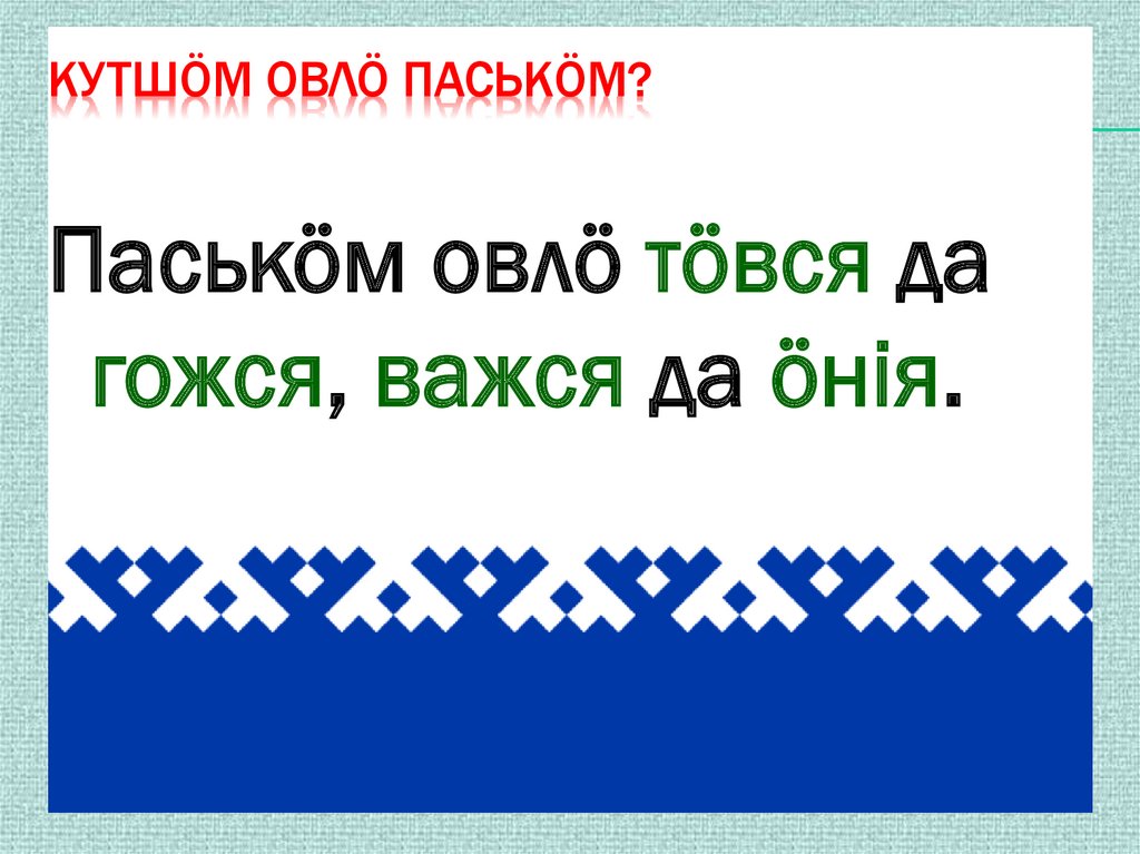 КУТШÖМ ОВЛÖ ПАСЬКÖМ?Паськöм овлö тöвся да