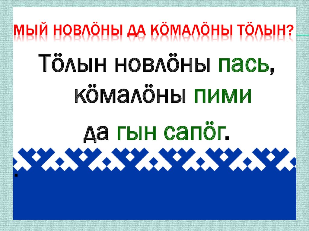 МЫЙ НОВЛÖНЫ ДА КÖМАЛÖНЫ ТÖЛЫН?Тöлын новлöны пась,