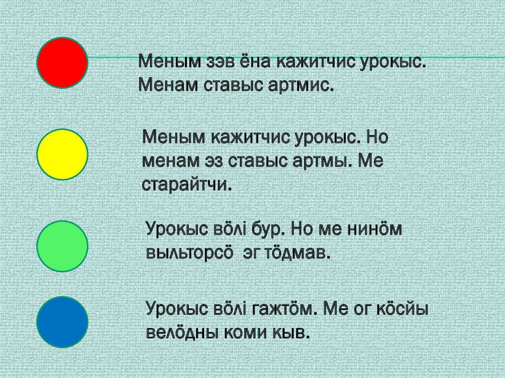 Меным зэв ёна кажитчис урокыс.Менам ставыс артмис.