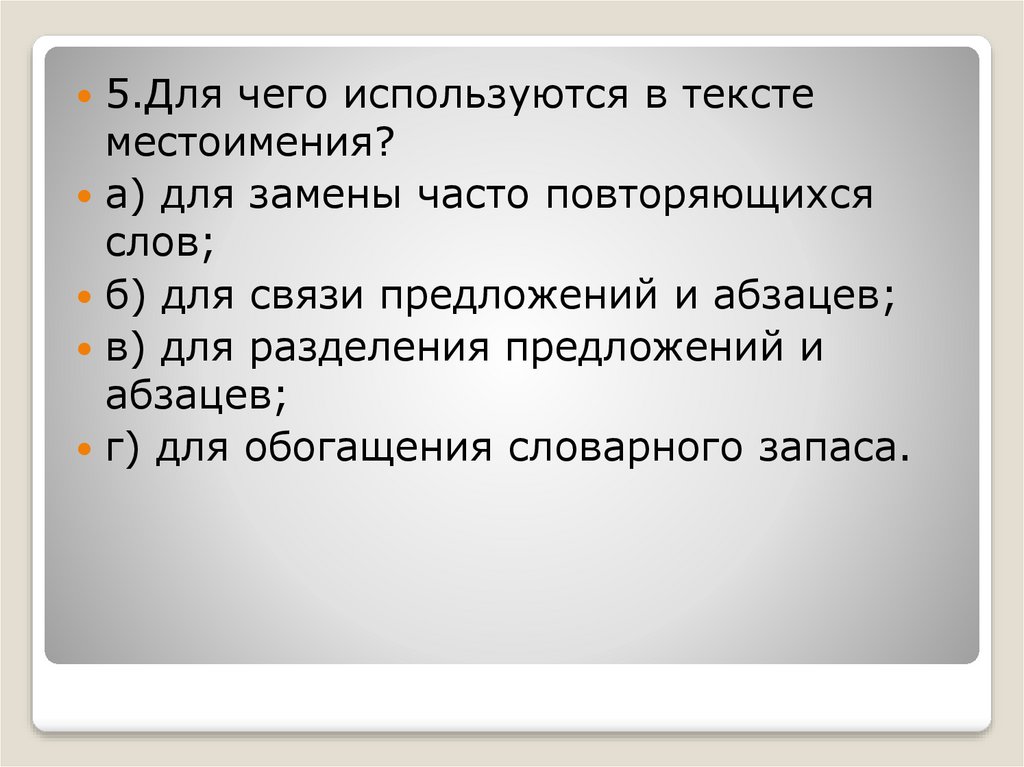 5.Для чего используются в текстеместоимения?