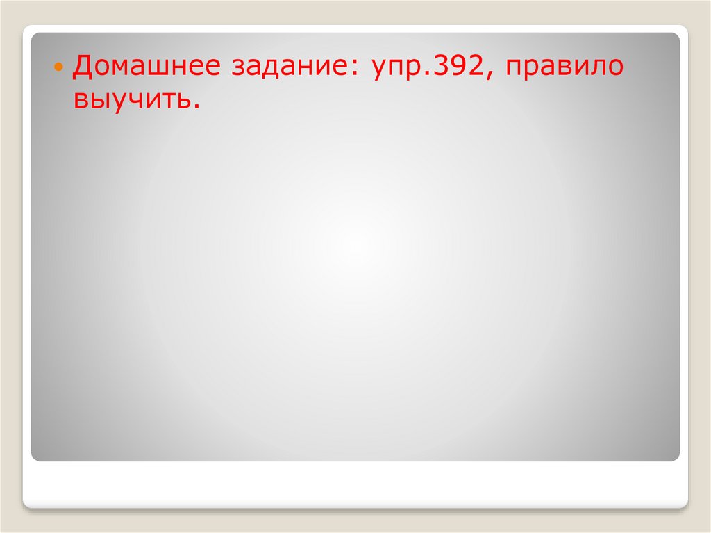 Домашнее задание: упр.392, правиловыучить.