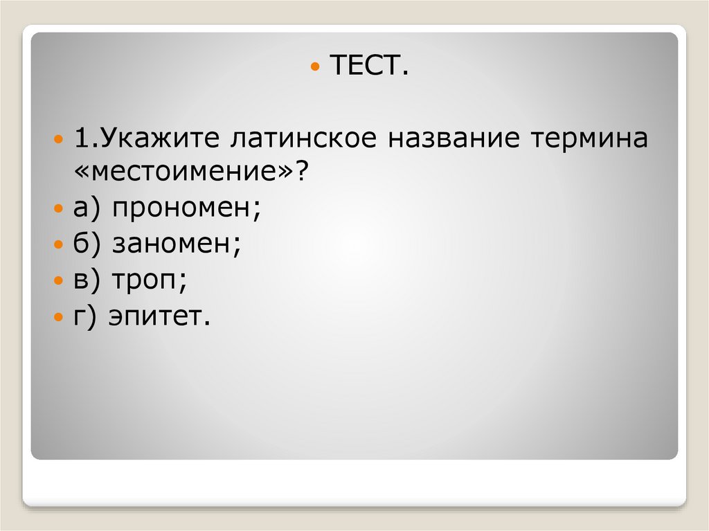 ТЕСТ.1.Укажите латинское название термина