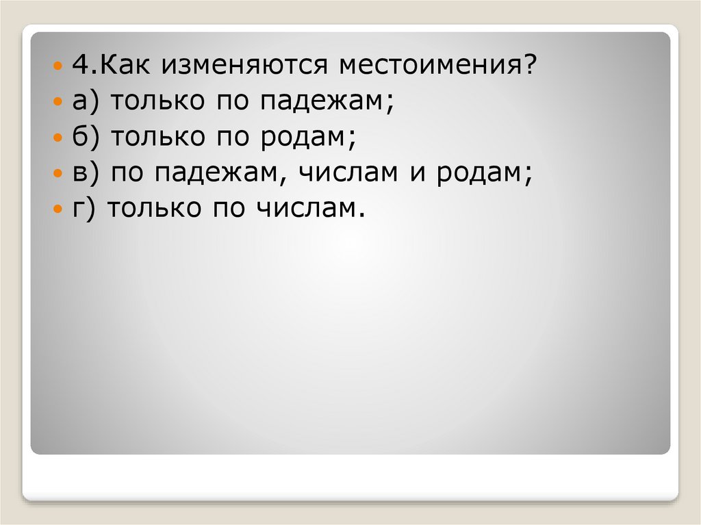 4.Как изменяются местоимения?а) только по падежам;
