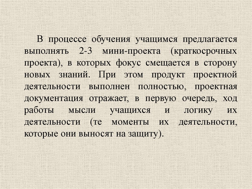 В процессе обучения учащимся предлагаетсявыполнять 2-3 мини-проекта (краткосрочных