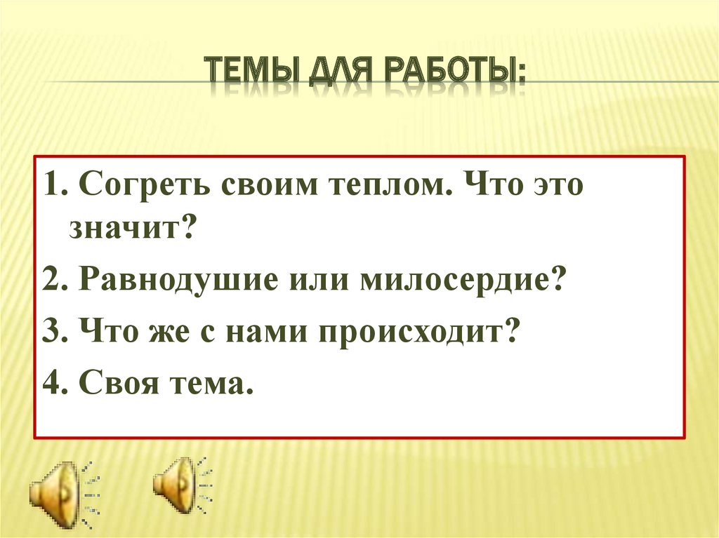 ТЕМЫ ДЛЯ РАБОТЫ:1. Согреть своим теплом. Что это
