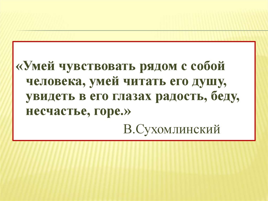 «Умей чувствовать рядом с собойчеловека, умей читать его душу,