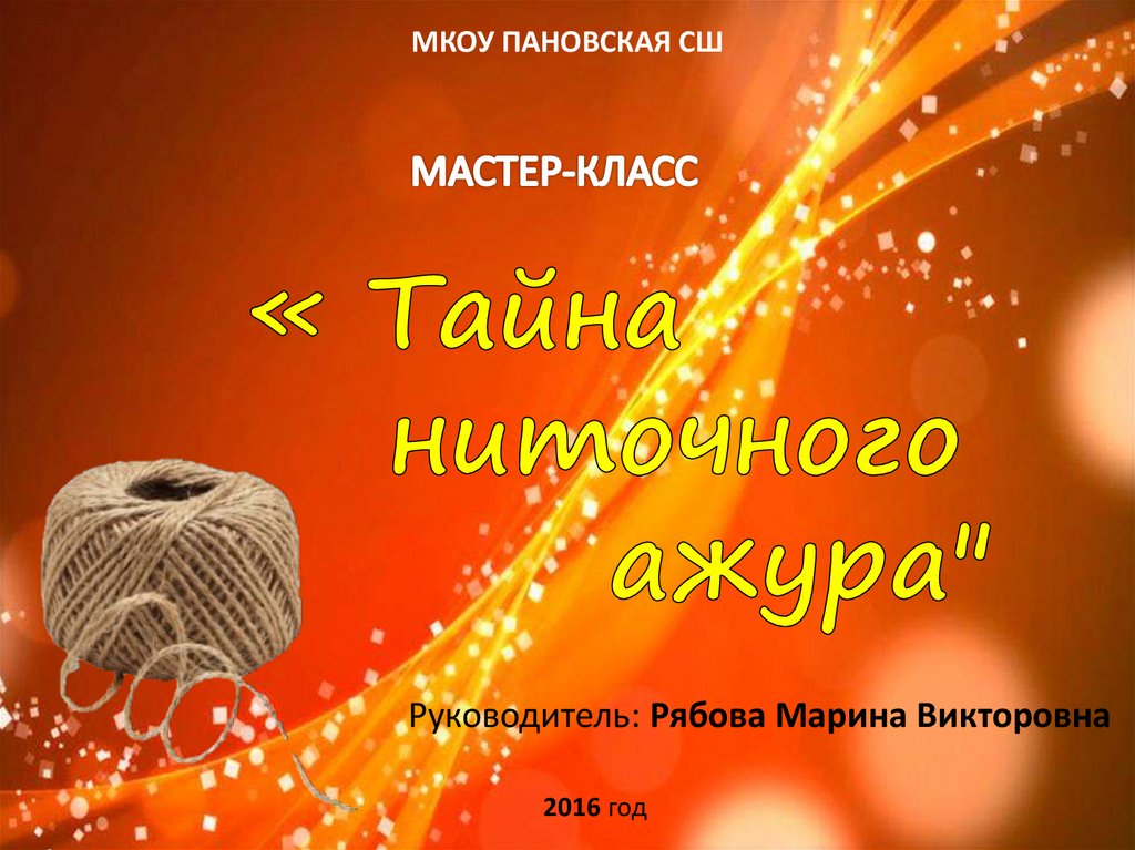 МКОУ ПАНОВСКАЯ СШРуководитель: Рябова Марина Викторовна