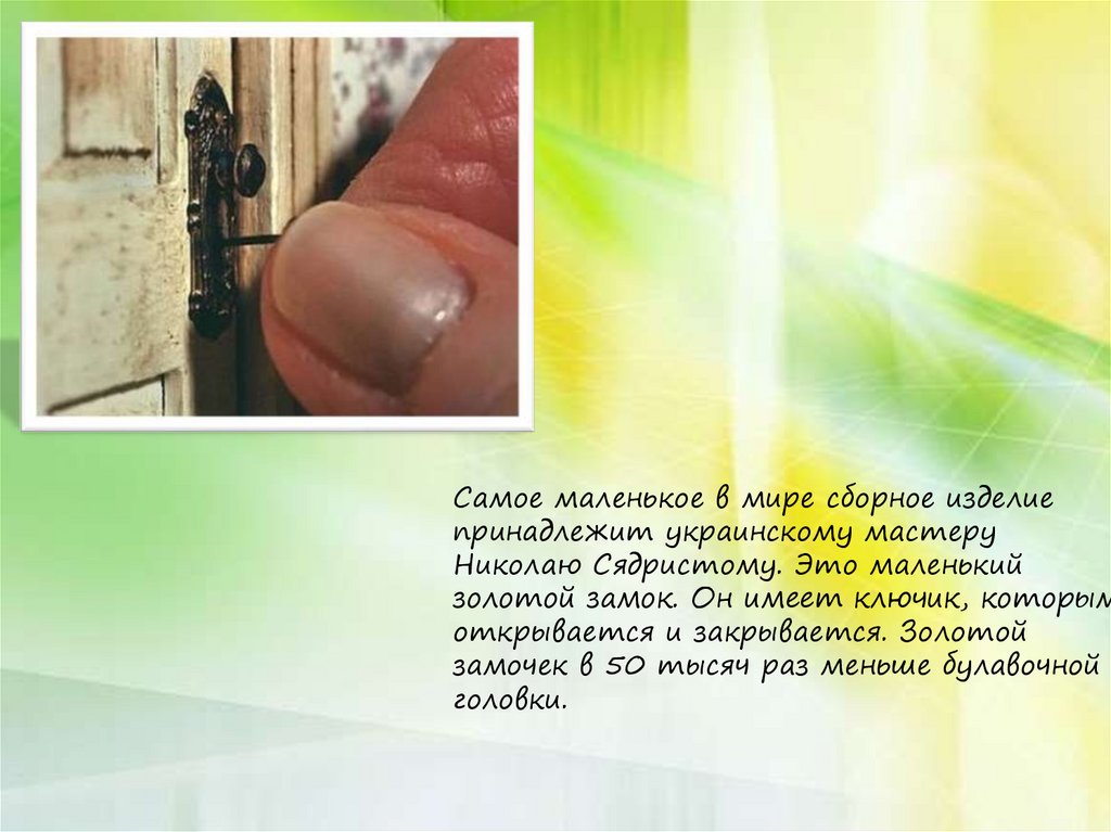 Самое маленькое в мире сборное изделиепринадлежит украинскому мастеру