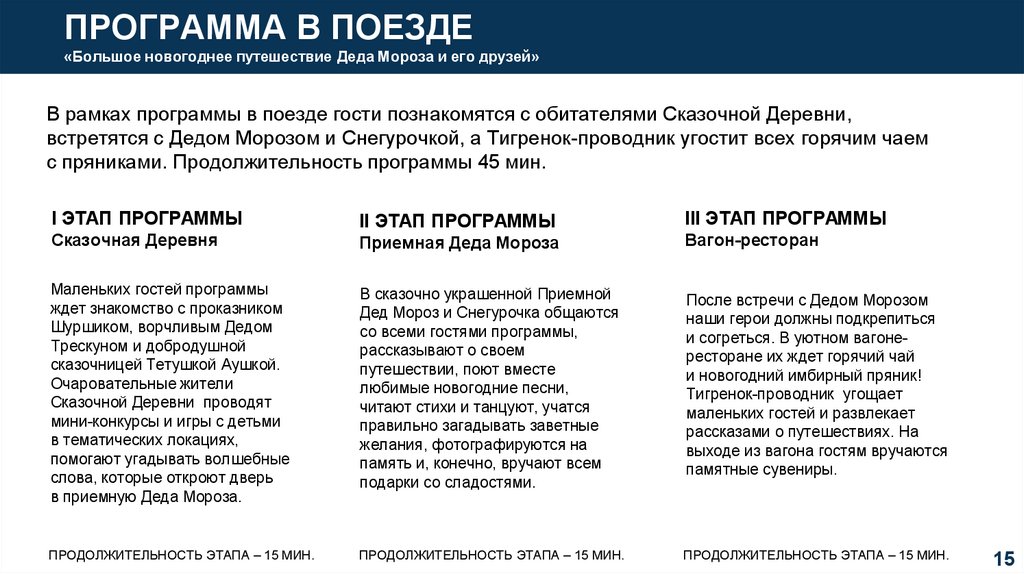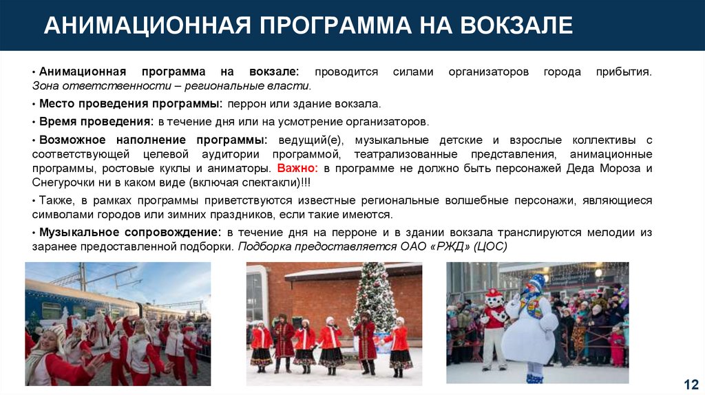 программы, ростовые куклы и аниматоры. Важно: в программе не должно быть персонажей Деда Мороза и