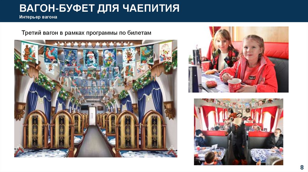 • После окончания программы в вагоне-ресторане детей встречает проводник поезда, вместе с волонтерами