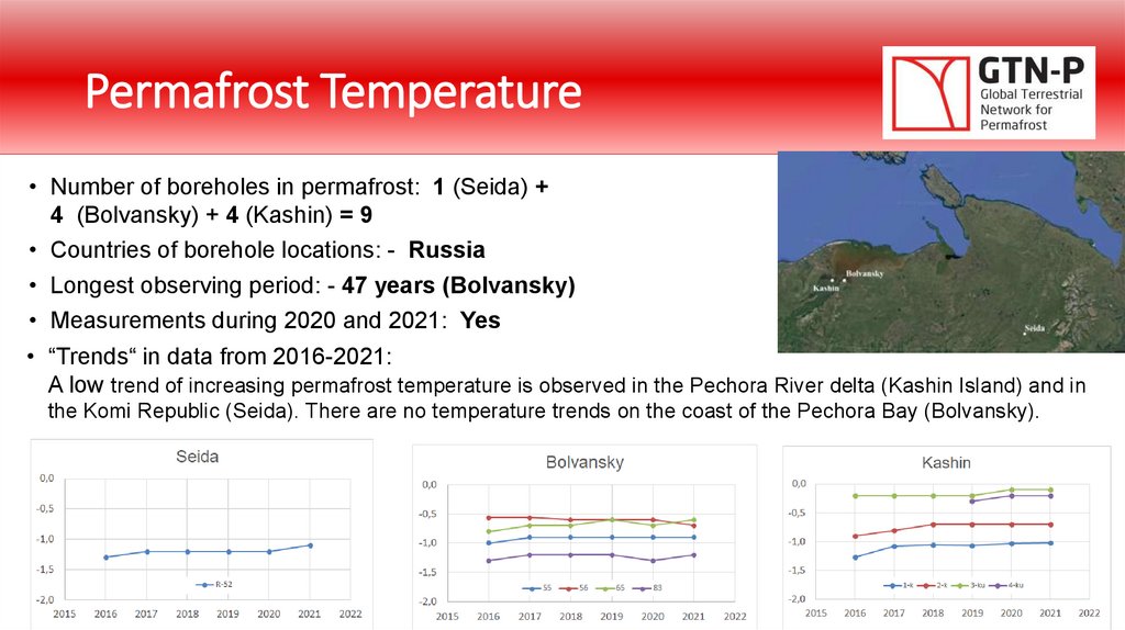 Permafrost Temperature• Number of boreholes in permafrost: 1 (Seida) +