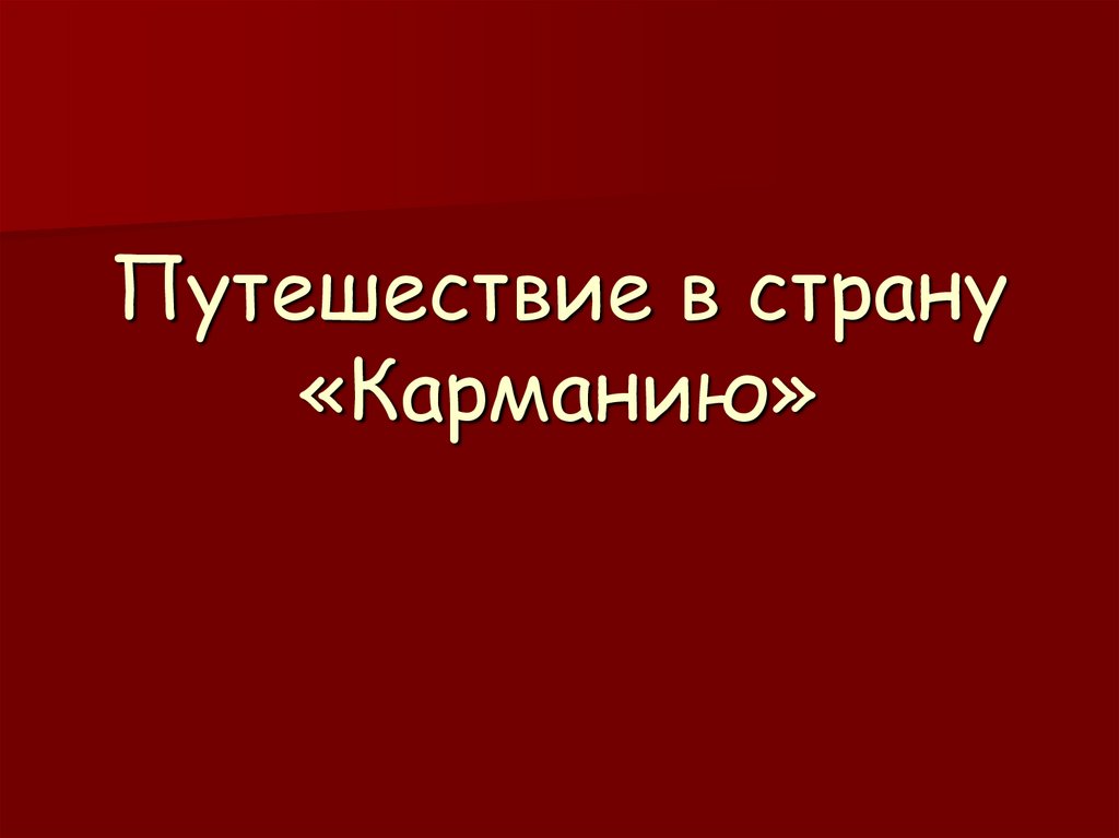 Путешествие в страну «Карманию»