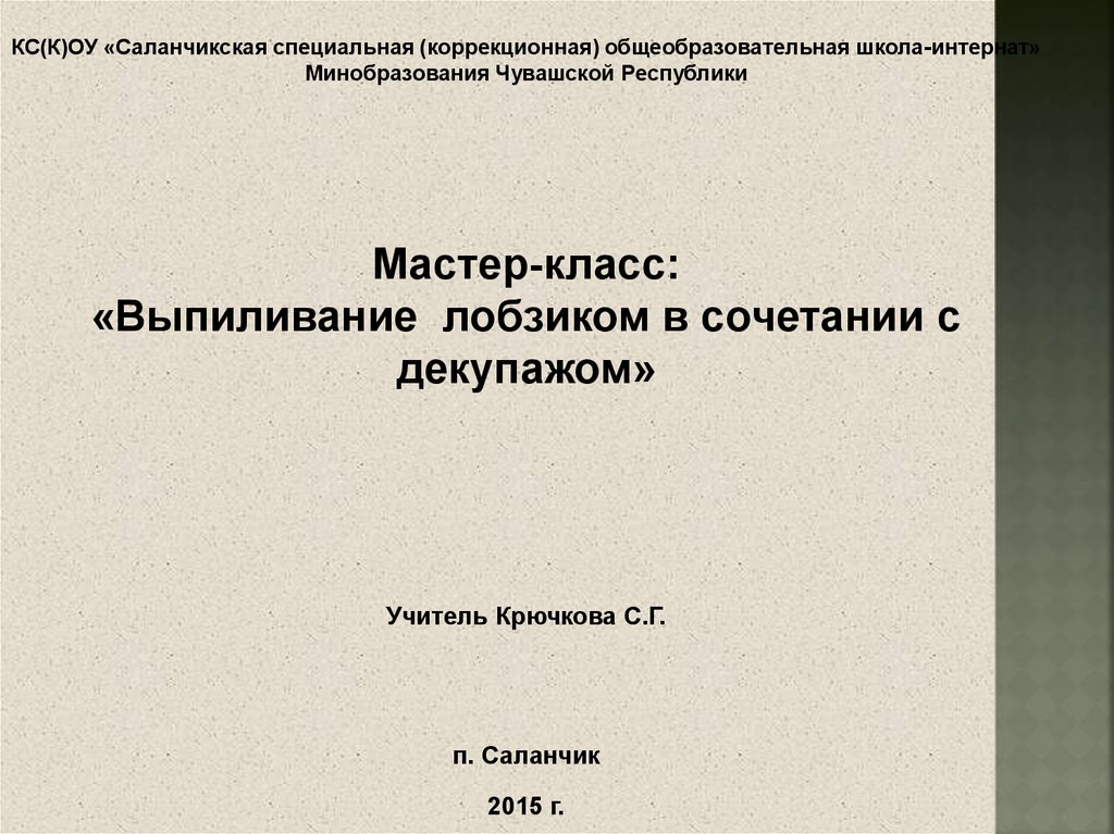 КС(К)ОУ «Саланчикская специальная (коррекционная) общеобразовательная школа-интернат»Минобразования Чувашской Республики