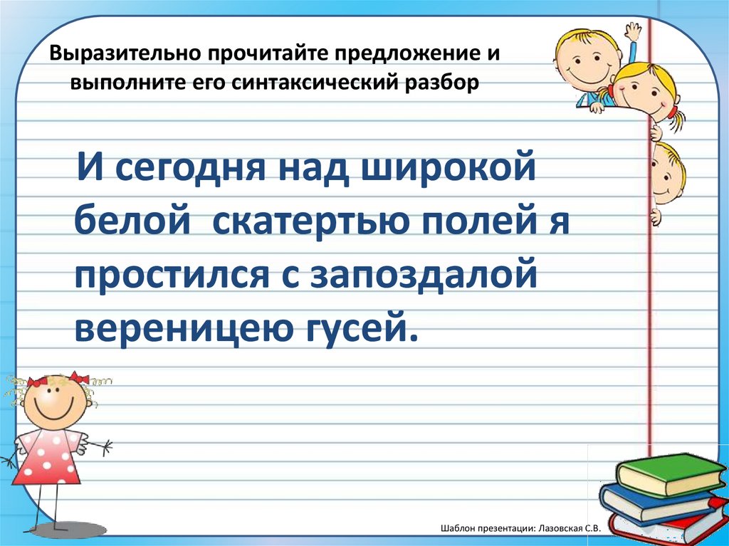 Выразительно прочитайте предложение ивыполните его синтаксический разбор