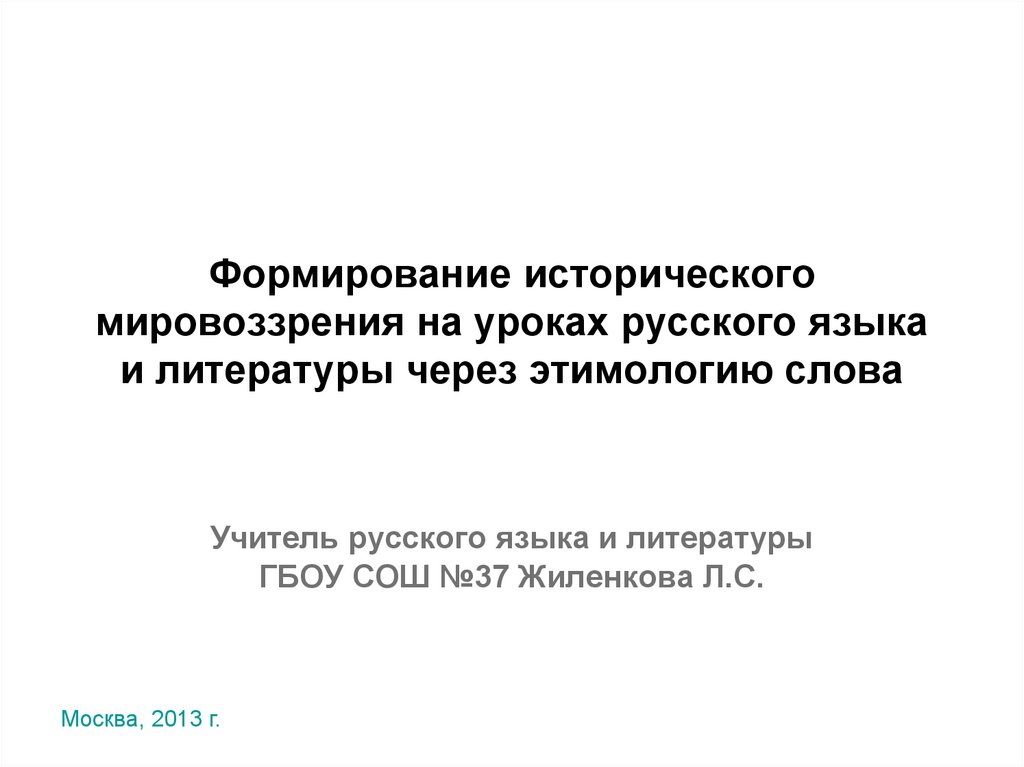 1. Формирование исторического мировоззрения на уроках русского языка и литературы через этимологию слова