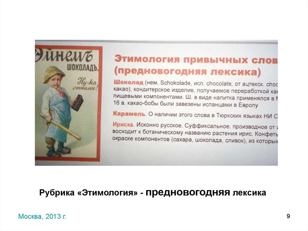 Рубрика «Этимология» - предновогодняя лексикаМосква, 2013 г.