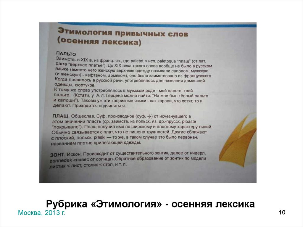 Рубрика «Этимология» - осенняя лексикаМосква, 2013 г.