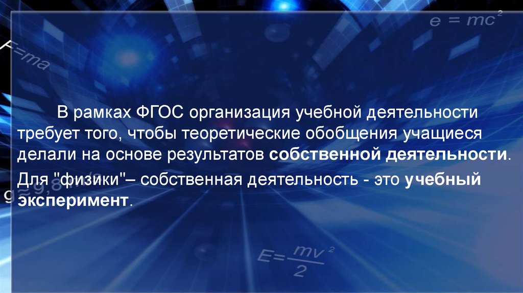 В рамках ФГОС организация учебной деятельноститребует того, чтобы теоретические обобщения учащиеся