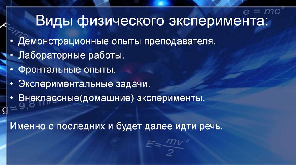 Виды физического эксперимента:Демонстрационные опыты преподавателя.
