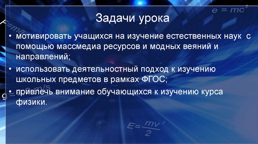 Задачи урока• мотивировать учащихся на изучение естественных наук с