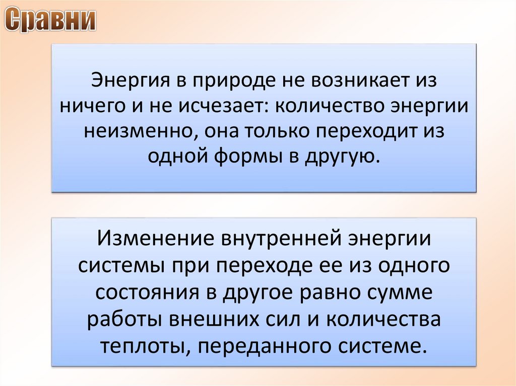 Энергия в природе не возникает изничего и не исчезает: количество энергии