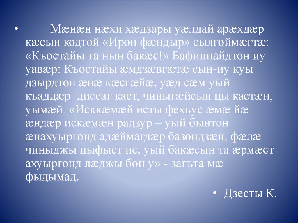 дзы фыссæджы хæдбындур курдиат, æмæ дзы
