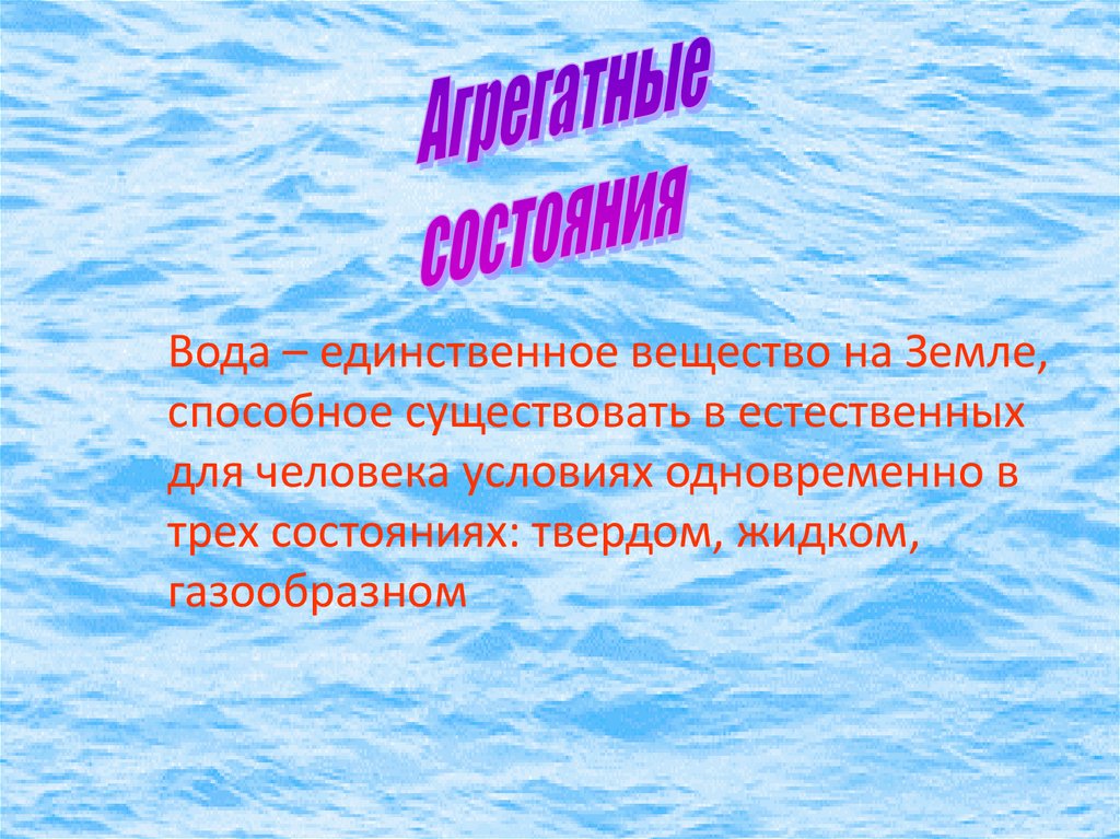 Вода – единственное вещество на Земле,Вода – единственное вещество на Земле,