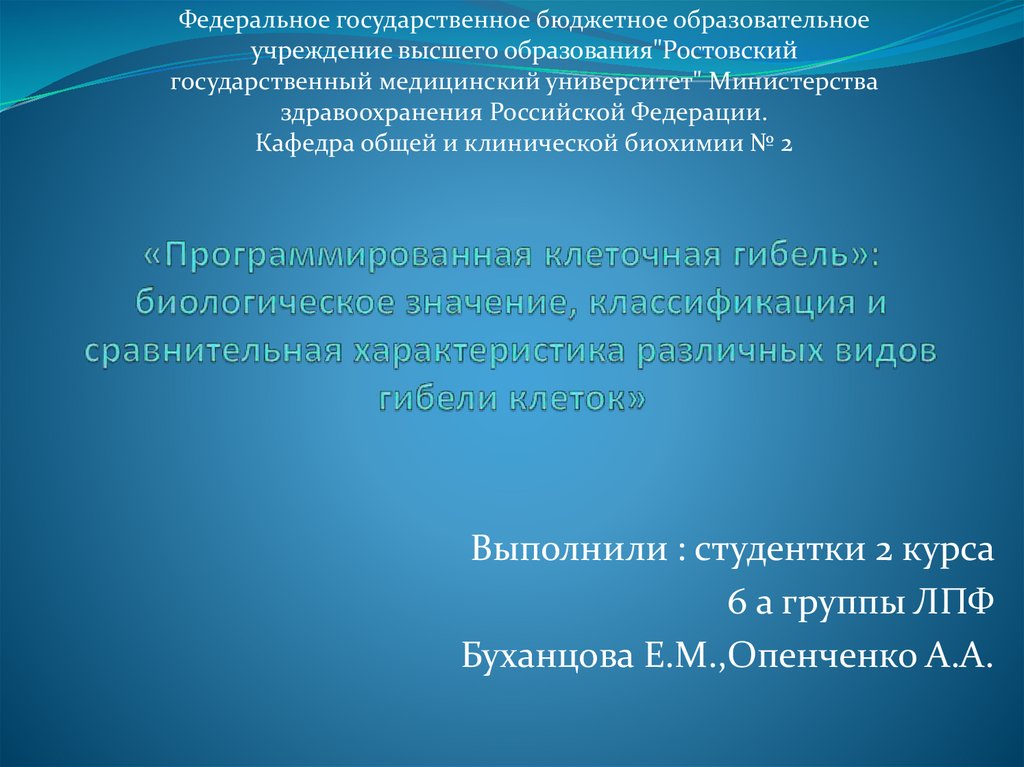 "Программированная клеточная гибель": биологическое значение, классификация и сравнительная характеристика