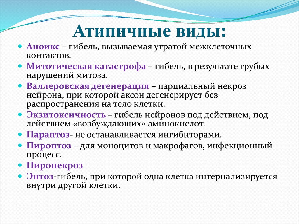 Атипичные виды:Аноикс – гибель, вызываемая утратой межклеточных