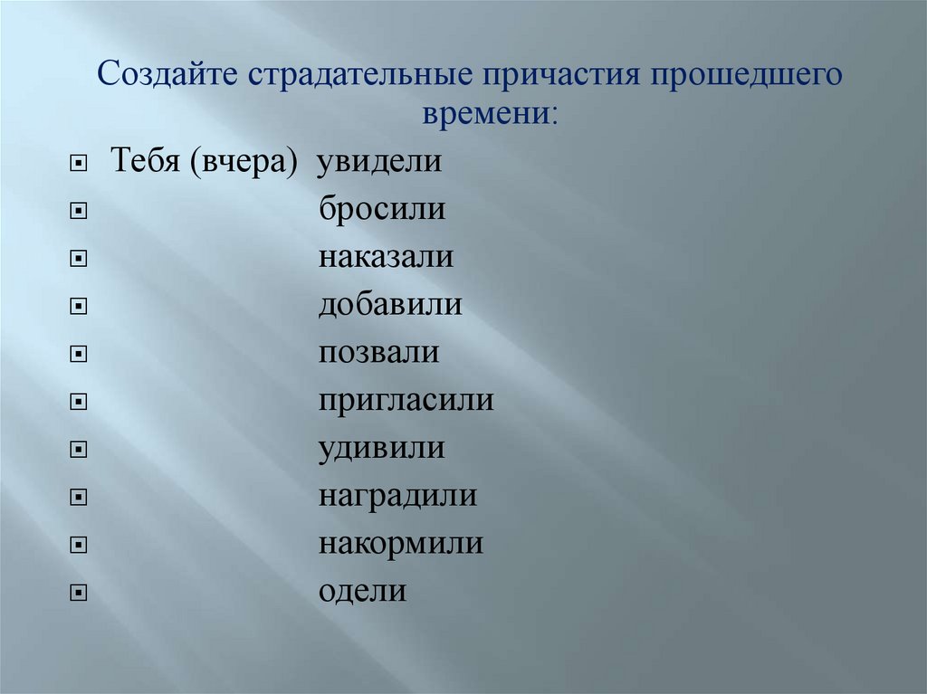 Меня (сейчас) одевают – я одеваемыйЕго (вчера) увидели – он увиденный
