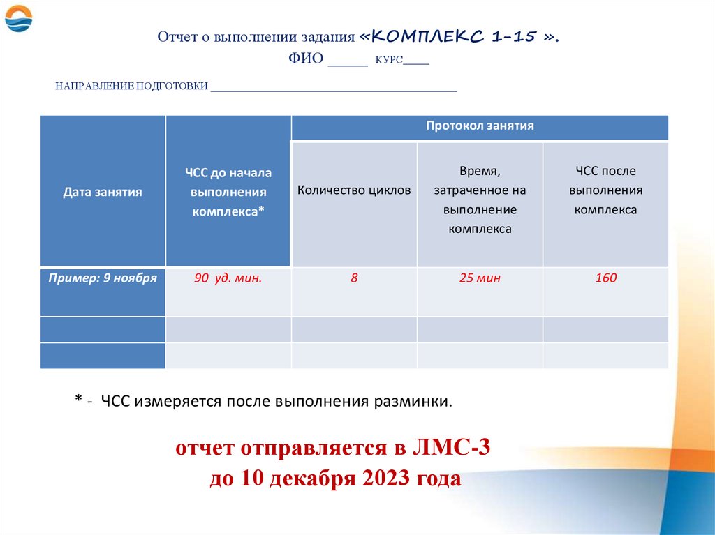 * - ЧСС измеряется после выполнения разминки.