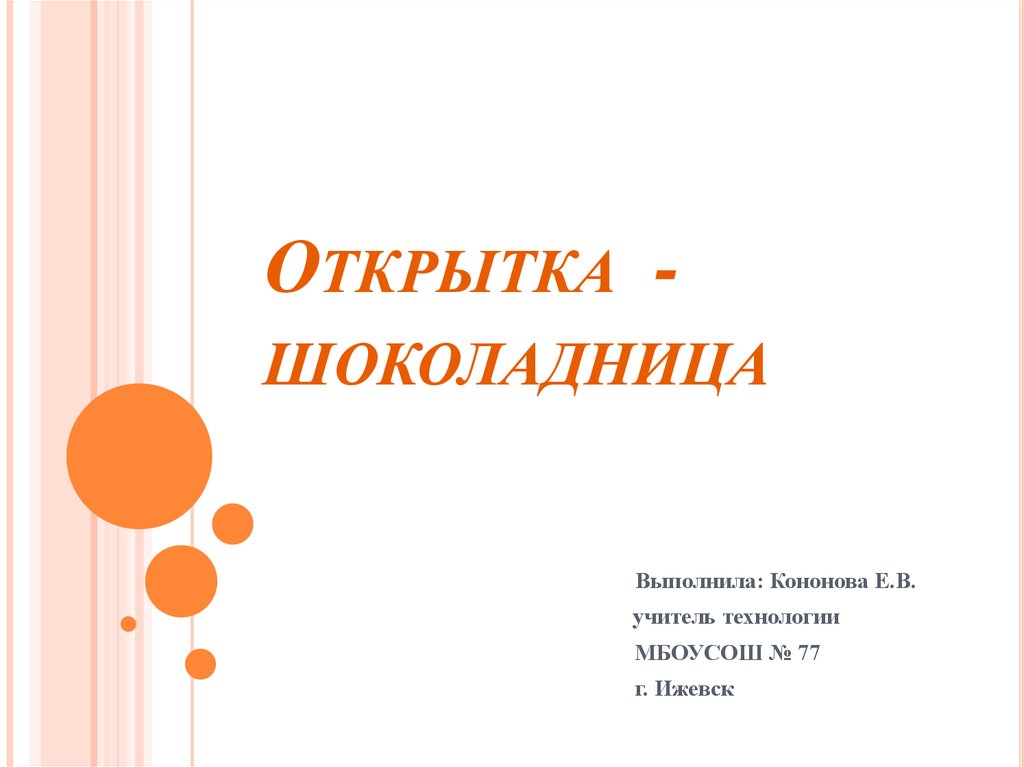 ОТКРЫТКА ШОКОЛАДНИЦАВыполнила: Кононова Е.В.