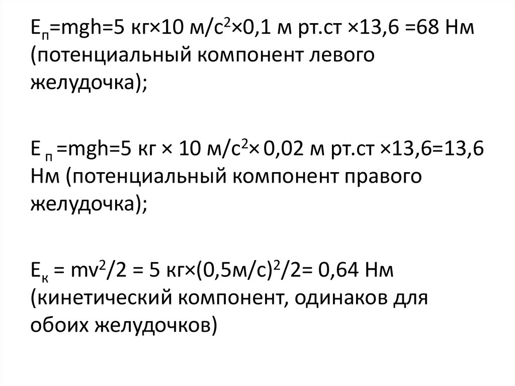Eп=mgh=5 кг×10 м/с2×0,1 м рт.ст ×13,6 =68 Нм(потенциальный компонент левого