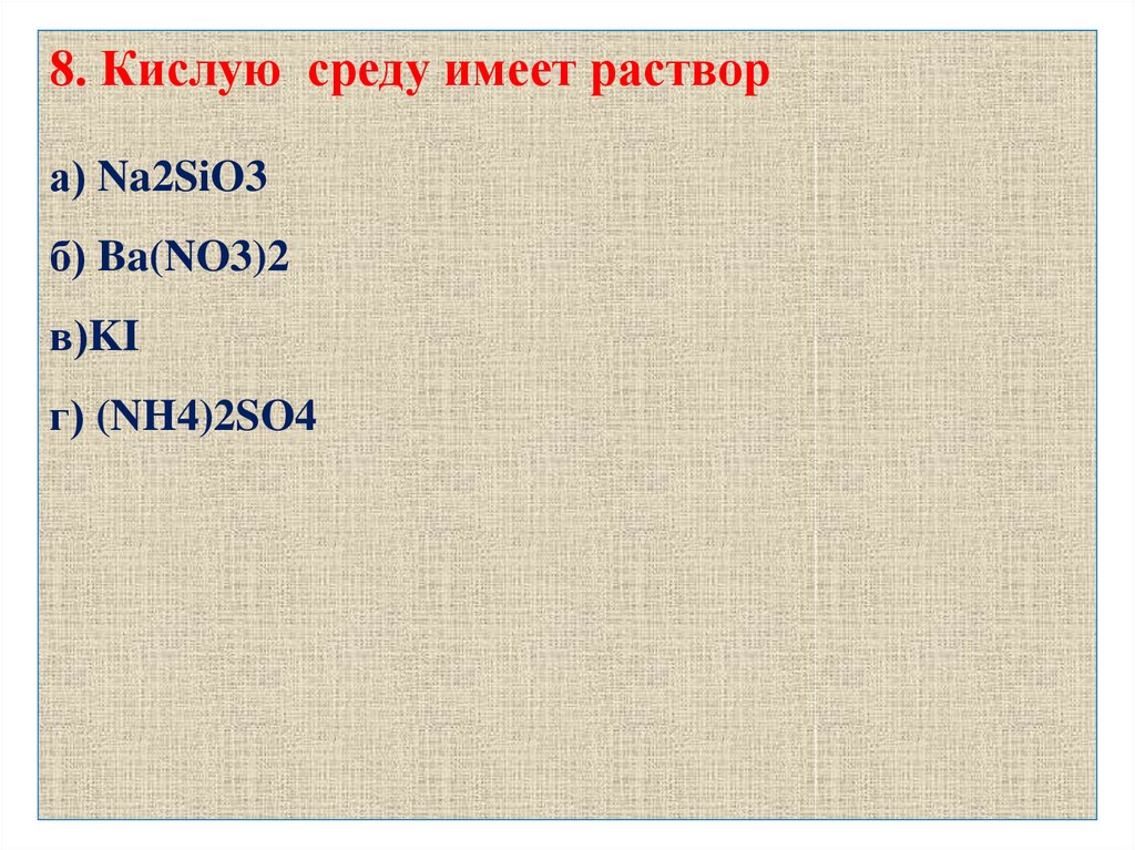 7. Нейтральную среду имеет раствора) сульфата натрия