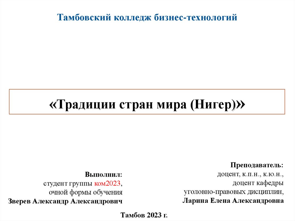 Тамбовский колледж бизнес-технологий«Традиции стран мира (Нигер)»