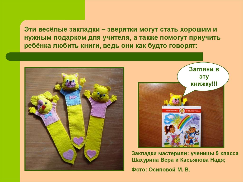Эти весёлые закладки – зверятки могут стать хорошим инужным подарком для учителя, а также помогут приучить
