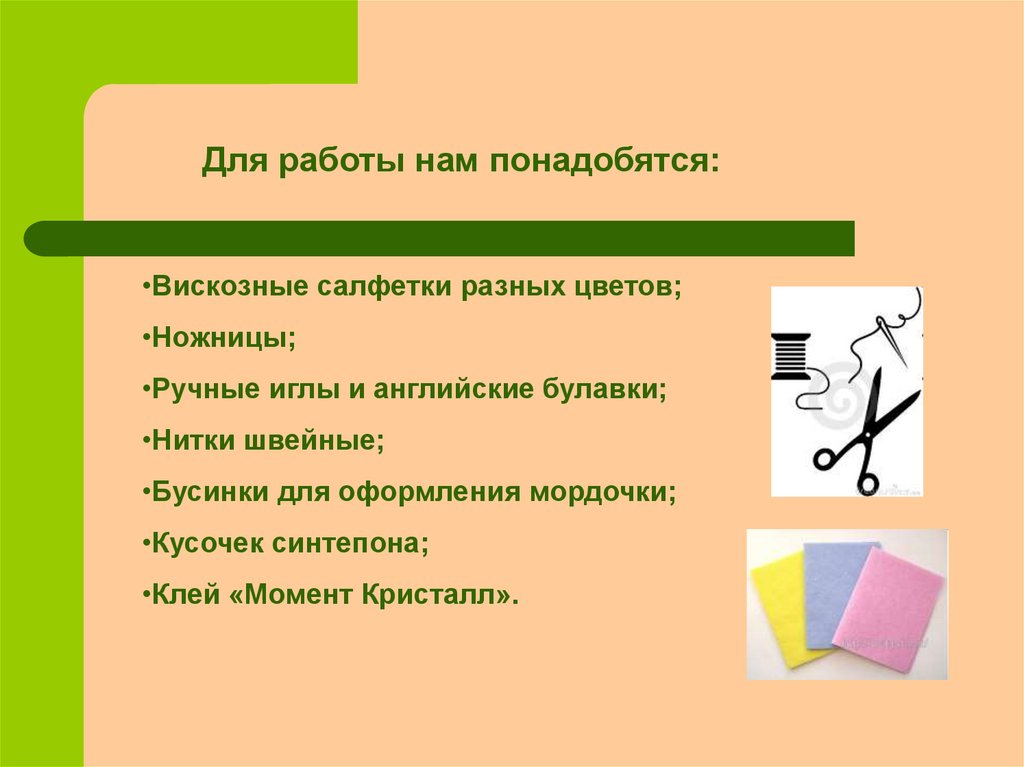 Для работы нам понадобятся:•Вискозные салфетки разных цветов;