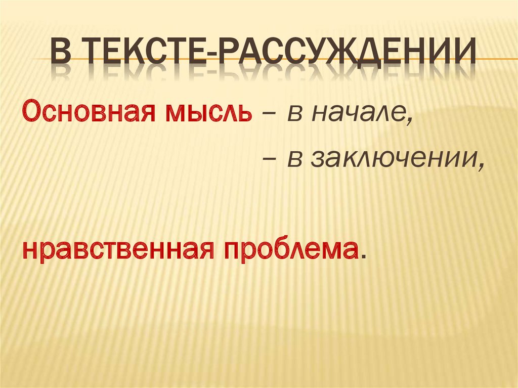В ТЕКСТЕ-РАССУЖДЕНИИОсновная мысль – в начале,