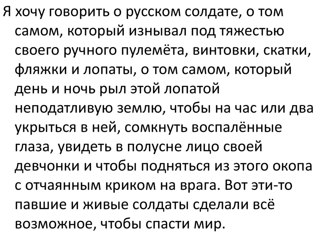 Я хочу говорить о русском солдате, о томсамом, который изнывал под тяжестью